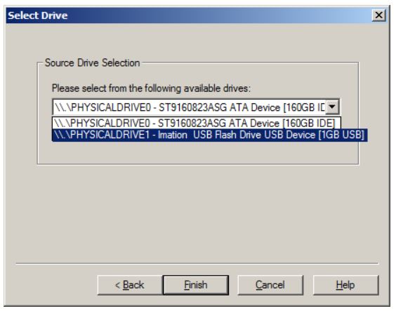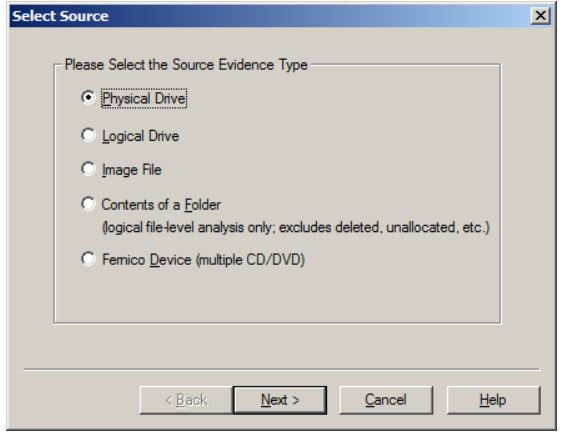 برای ایمیج گرفتن از کل یک دستگاه، Physical Drive را انتخاب کنید (یک دستگاه فیزیکی میتواند شامل بیش از یک Logical Drive باشد). همچنین میتوانید از یک Image File یک Image ایجاد کنید، که راهکار جامعی نیست اما اگر مثلاً بخواهید یک نسخه فشردهتر از Image ایجاد کنید، میتواند مطلوب باشد. همچنین میتوانید از محتویات خاص یک پوشه یا یک دستگاه ایمیج بگیرید (که برای ایجاد ایمیج از چندین CD یا DVD با پارامترهای یکسان ایدهآل است).