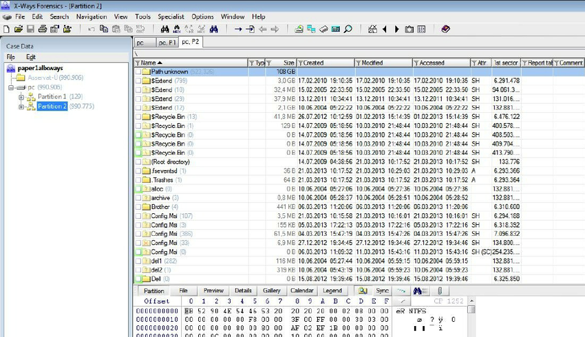 X-Ways با دقت بالا پارتیشنهای حذفشده، ساختار GPT/MBRو فایلسیستمهای Mixed را شناسایی کرده و امکان مستندسازی آنها را میدهد.