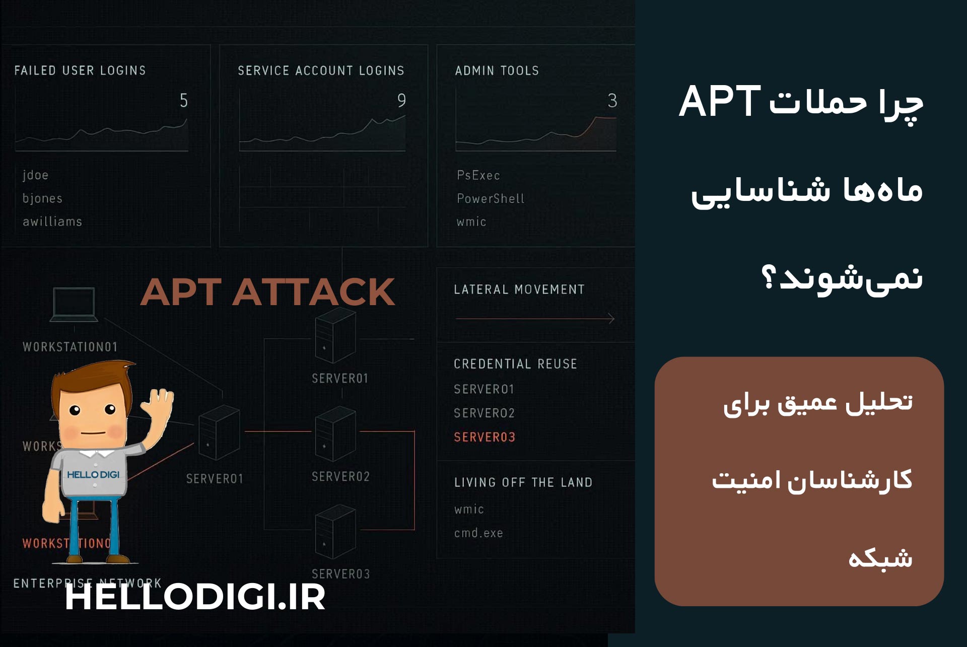 APT شناسایی نمیشود چون از ابزارهای Legitimate استفاده میکند، در بازههای زمانی طولانی حرکت میکند و از شکاف بین Endpoint، Identity و Network عبور میکند.